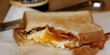 Breakfast Sandwich - egg, cheese and your choice of ham, bacon, sausage or Turkey on either White, Wheat or Biscuit $7.50